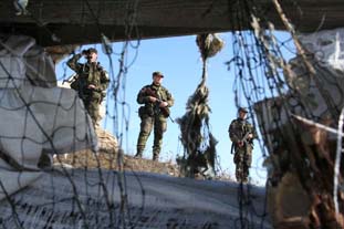 Velitel seznamuje vojáky s úkolem, provádí kontrolu munice, zbraní a osobního vybavení. Před námi je přibližně čtyřhodinová hlídka. Z větší části půjde o „car patrol“, zbývající část plánované trasy překonáme pěšky. Trasa vede stále více do kopců a řidič má čím dál větší problémy zaváté a namrzlé cesty plní výmolů překonávat. Asi po tři čtvrtě hodině je první zastávka. Z ničeho nic se kolem auta seběhne hlouček malých chlapců, kteří nadšeně mávají, natahují ruce a pokřikují. „Vědí, že se dříve či později objevíme. Snažíme se pro ně vždy něco malého mít,“ říká jeden voják z hlídky a vytahuje z baťohu malého plyšáka. Děti se smějí a natahují ruce, dokud nezískají ještě alespoň pytlík bonbónů. „Kdyby tady ty děti nestály, víme, že něco není v pořádku“, dodává podpraporčík Jiří Karlovský.
