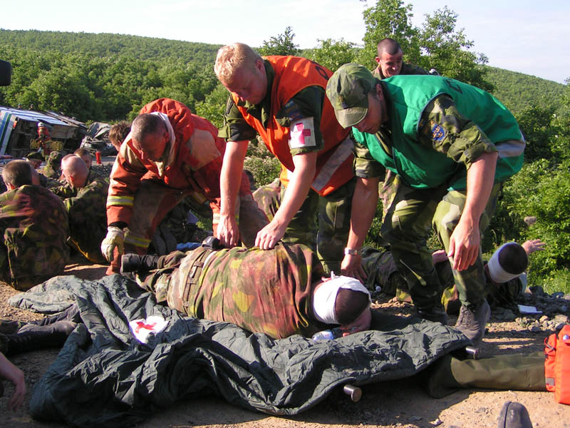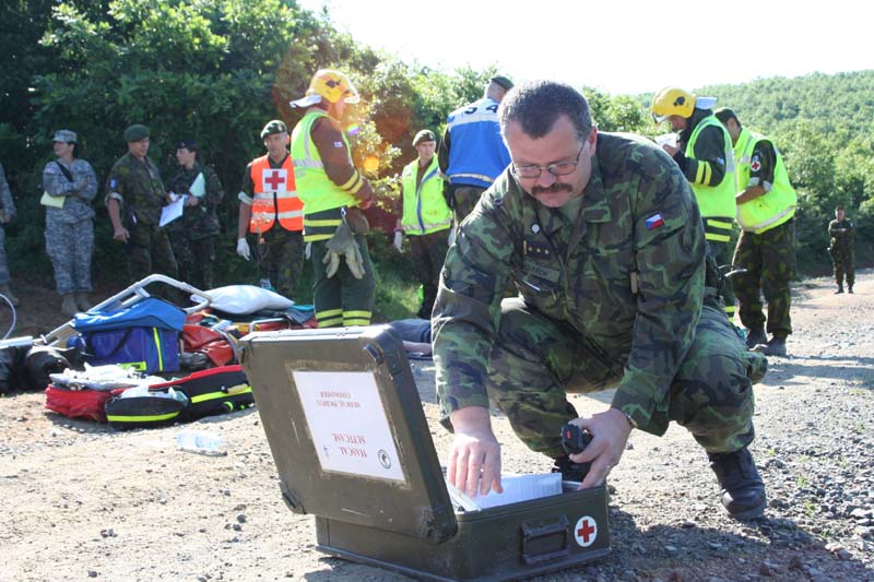 „Jako první na místě zasahovali Švédové a Finové,“ říká hlavní lékař a zdravotnický poradce velitele úkolového uskupení Střed plukovník MUDr. Viktor Vojtěch, který se na přípravě cvičení úzce podílel. Podle něj se cvičení od předcházejících odlišuje především svým rozsahem. „Jeho přípravě jsme proto věnovali značnou pozornost. Žádná rizika v zahraniční misi není možné podceňovat. K havárii či jiné mimořádné události s větším počtem postižených může dojít vlastně kdykoliv. Mimo jiné bychom takto zasahovali i v případě mimořádné události na letišti v Prištině, nebo i na jiných místech v prostoru naší odpovědnosti,“ dodává plukovník MUDr. Viktor Vojtěch.