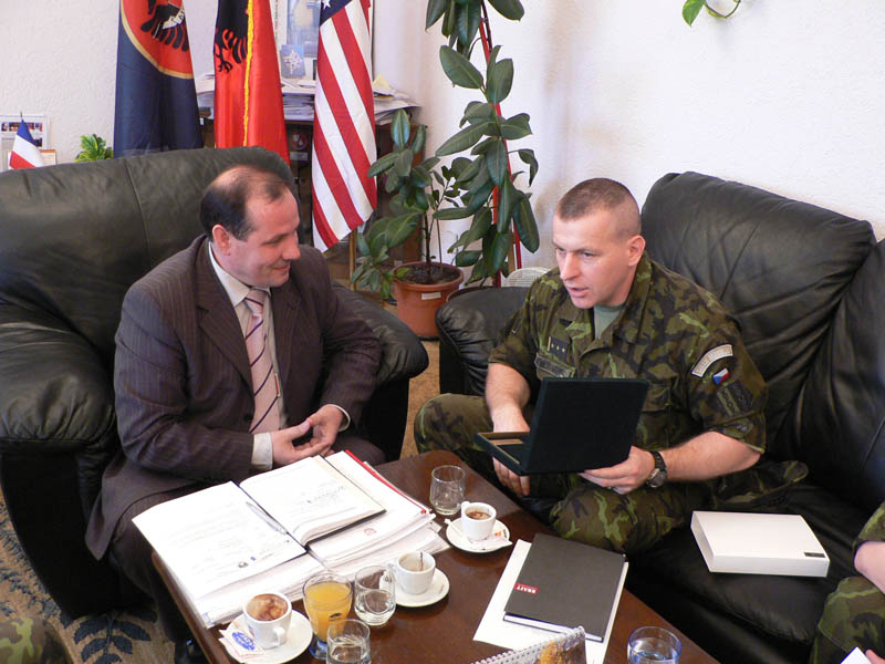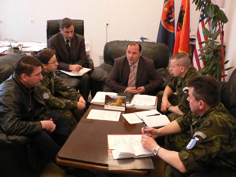 Velitel uskupení Střed a českého kontingentu v silách KFOR plukovník Miroslav Hlaváč se dnes setkal se starostou Agimem Kikajem a dalšími představiteli místní správy a správy OSN v Podujevu.