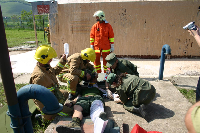 Na místo havárie vyjíždějí hasiči, zdravotníci a ženisté KFOR, kteří zasahující záchranáře posilují. Prvotní ženijní průzkum, zajištění místa havárie a podmínek pro působení záchranářů mají na starosti pyrotechnici a psovodi českého kontingentu. Také oni při zásahu spolupracují s příslušníky kosovského ochranného sboru. „Je to nejen o rychlosti, ale také kvalitě průzkumu a souhře na místě zásahu. Jde o to, abychom co nejdříve zajistili místo havárie a vytvořili základní podmínky pro činnost záchranářů a dalších zasahujících jednotek,“ říká velitel českého pyrotechnického týmu kapitán Jaromír Talpa.