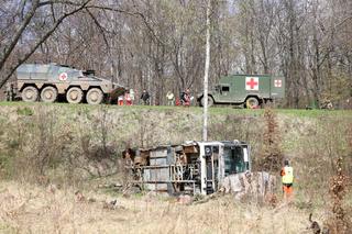 Pandur se srazil s autobusem, více než 40 raněných. Vojáci na Slovensku cvičili zásah u hromadné nehody