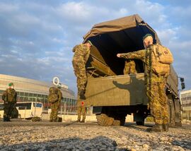 Vojáci pozemních sil pomáhají v Národním očkovacím centru