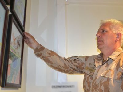 Vojáci v Kábulu z obrázků od českých dětí vytvořili výstavu ve společné místnosti