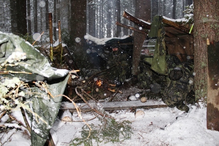 Nováčci si v Bučovicích vyzkoušeli střelbu z útočné pušky i stavbu přístřešku v mrazu