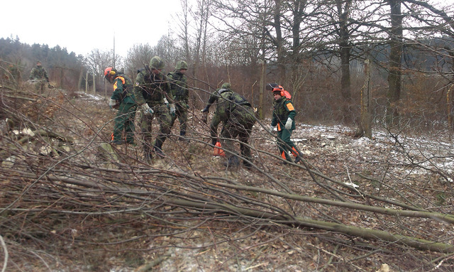 Vojáci pomáhají s výstavbou oplocenky ve Vrběticích