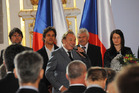 Prezident Zeman přijal olympioniky ze Soči, hymnu zazpíval Karel Gott