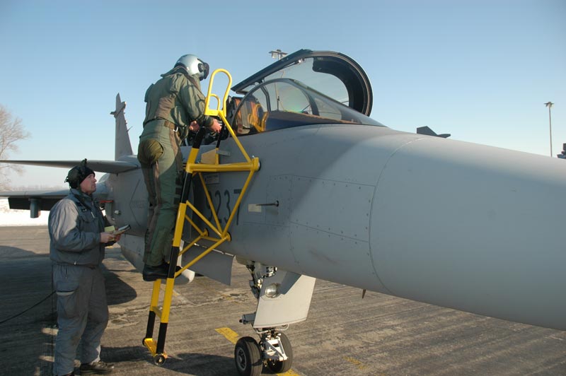 Příprava českých pilotů a techniků probíhala na švédské vojenské letecké základně v Satänas, Linköping a výcvikovém středisku Halmstäd.